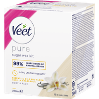 Heita vaxið frá Veet inniheldur náttúruleg innihaldsefni sem fjarlægja hár en veita á sama tíma raka. Húðin verður mjúk og hárlaus í allt að 4 vikur. Hita skal vaxið í örbylgjuofni í 45 sekúndur eða 10 mínútur í sjóðandi vatni. Spaði fylgir með til þess að hræra í vaxinu og bera það á húðina. Blár kassi er á spaðanum sem segir til um hvort hitastigið á vaxinu sé í lagi. Strimlar sem fylgja með eru notaðir til þess að fjarlægja vaxið. Vaxið er með vanillu lykt.