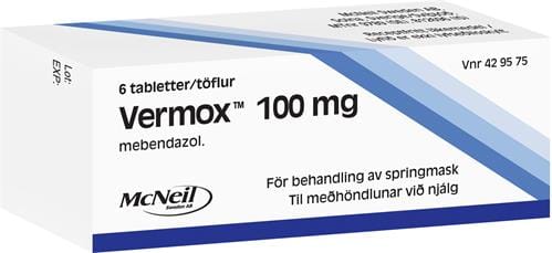 Vermox meðhöndlar bandorma hjá fullorðnum og börnum frá 2 ára aldri. Drepur orminn og hindrar þróun ormaeggja.