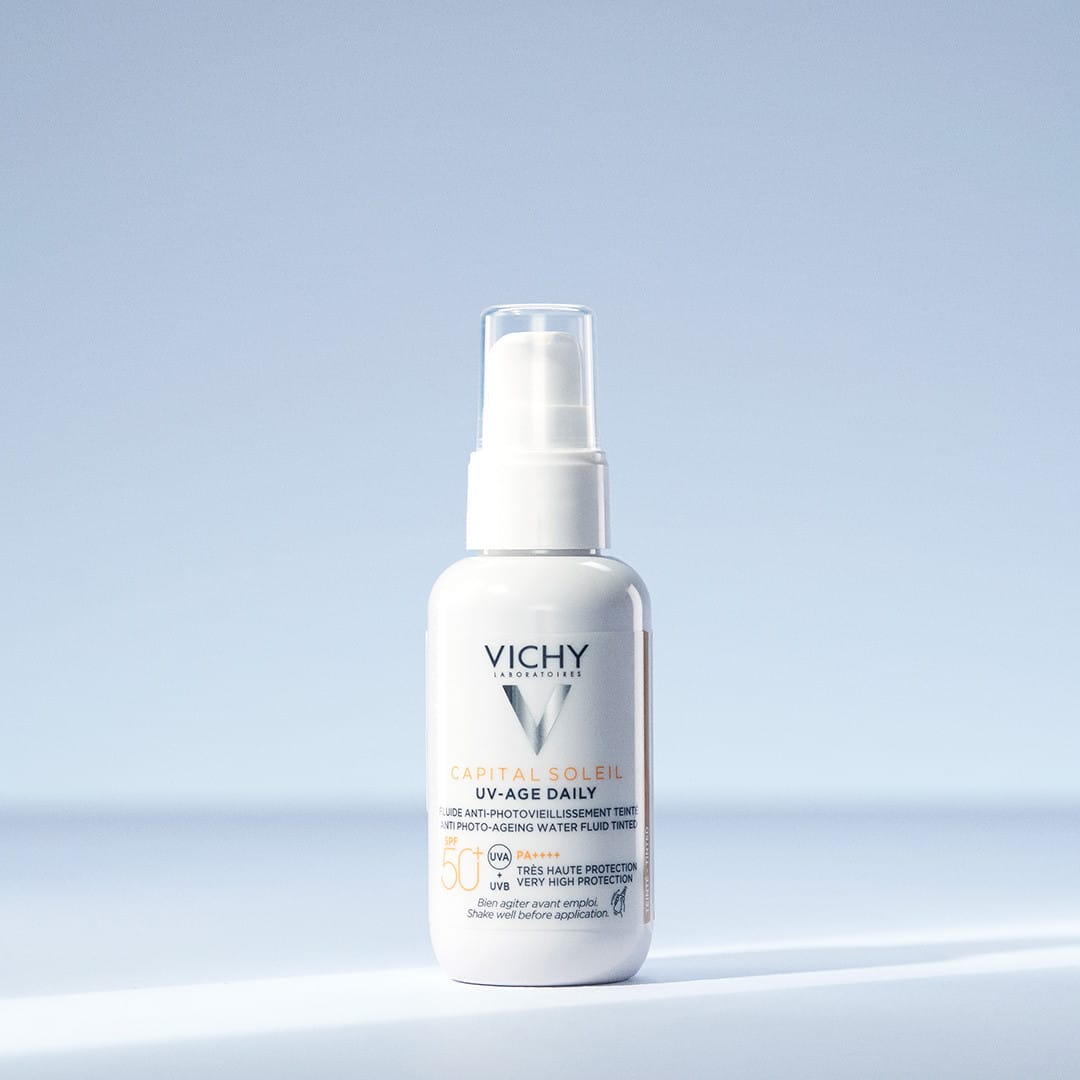 Vichy Capital Soleil UV Age er sólarvörn sem veitir breiða vörn fyrir skaðsemi sólarinnar. Formúlan er rík af næringarríkum innihaldsefnum sem um leið draga úr einkennum öldrunar í húðinni og styrkja varnir hennar. Formúlan inniheldur góðgerla, peptíð og niacinamide. Kremið jafnar litarhaft húðarinnar og dregur úr myndun litabletta og leysir upp sindurefni í húðinni svo húðin verður heilbrigðari. Kremið er með SPF50+ vörn. Prófað og mælt með af húðsjúkdómalæknum um allan heim.