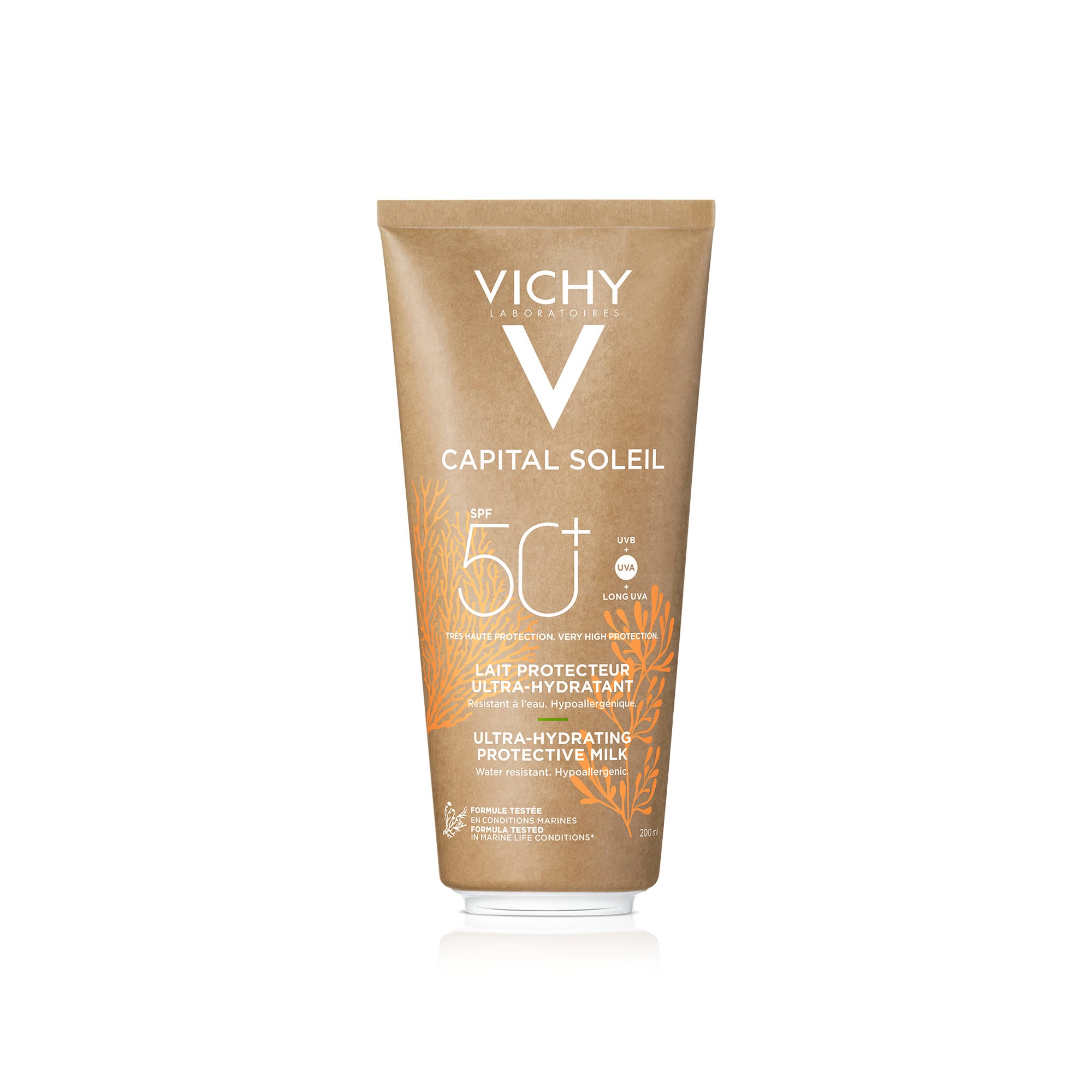 Capital Soleil Solar Eco-Designed Milk SPF50+ er létt sólarvörn fyrir andlit og líkama sem veitir mikla vörn gegn UVA og UVB geislum. Vörnin gefur allt að 24 klukkustunda raka og inniheldur Hyaluronic sýru og Glýserin. Hentar viðkvæmri húð. Vörnin er framleidd með miklu tilliti til lífríki sjávar og umhverfis áhrifum, 45% minna plast og eru umbúðirnar 94% niðurbrjótanlegar.