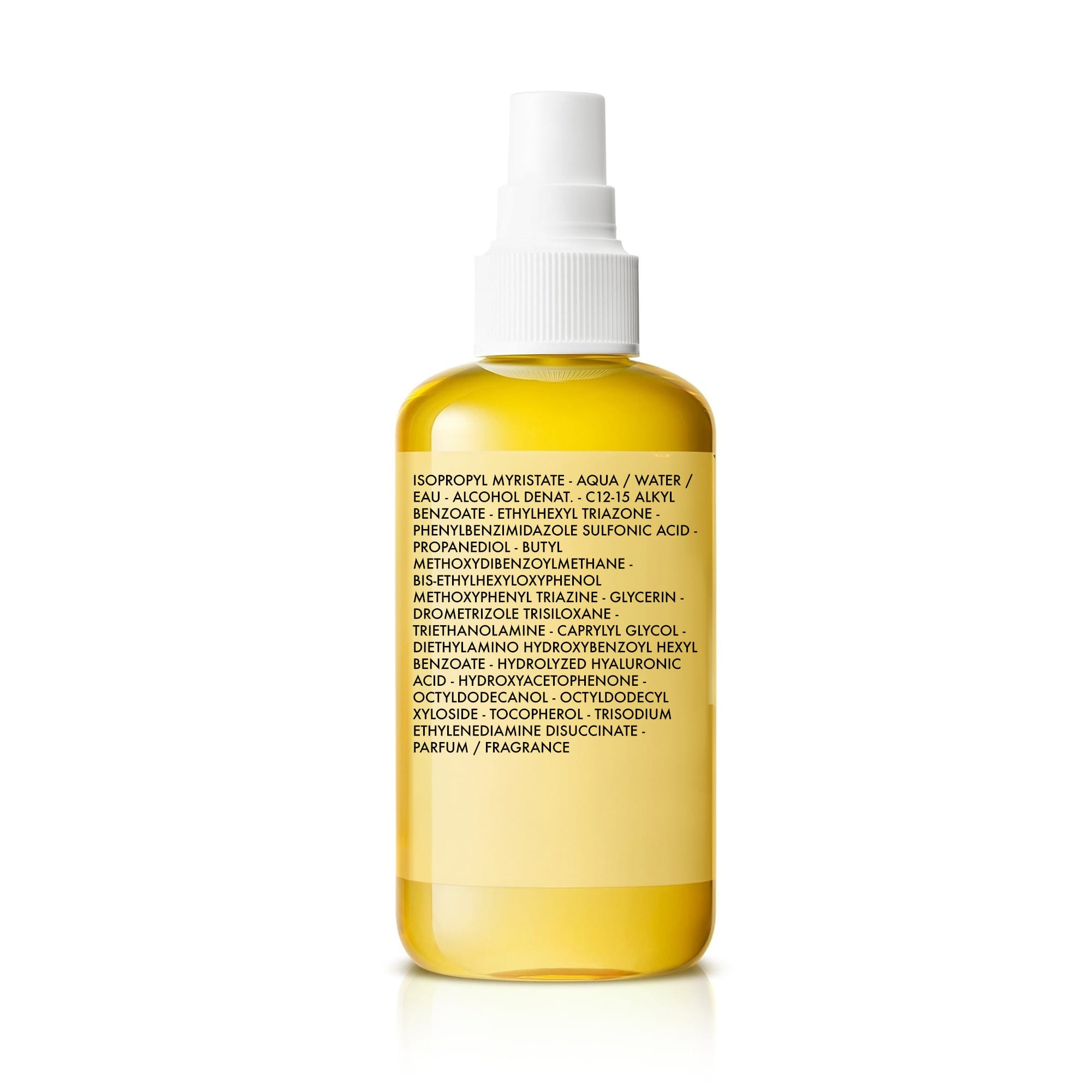 aqua / water, homosalate, dicaprylyl ether, diisopropyl sebacate, octocrylene, ethylhexyl triazone, dicaprylyl carbonate, ethylhexyl salicylate, alcohol denat., butyl methoxydibenzoylmethane, glycerine, phenylbenzimidazole sulfonic acid, propane acid hyaluronic acid, phenoxyethanol, poly c10-30 alkyl acrylate, terephthalylidene dicamphor sulfonic acid, tocopherol, trisodium ethylenediamine disuccinate, perfume / fragrance, c234371 / 1