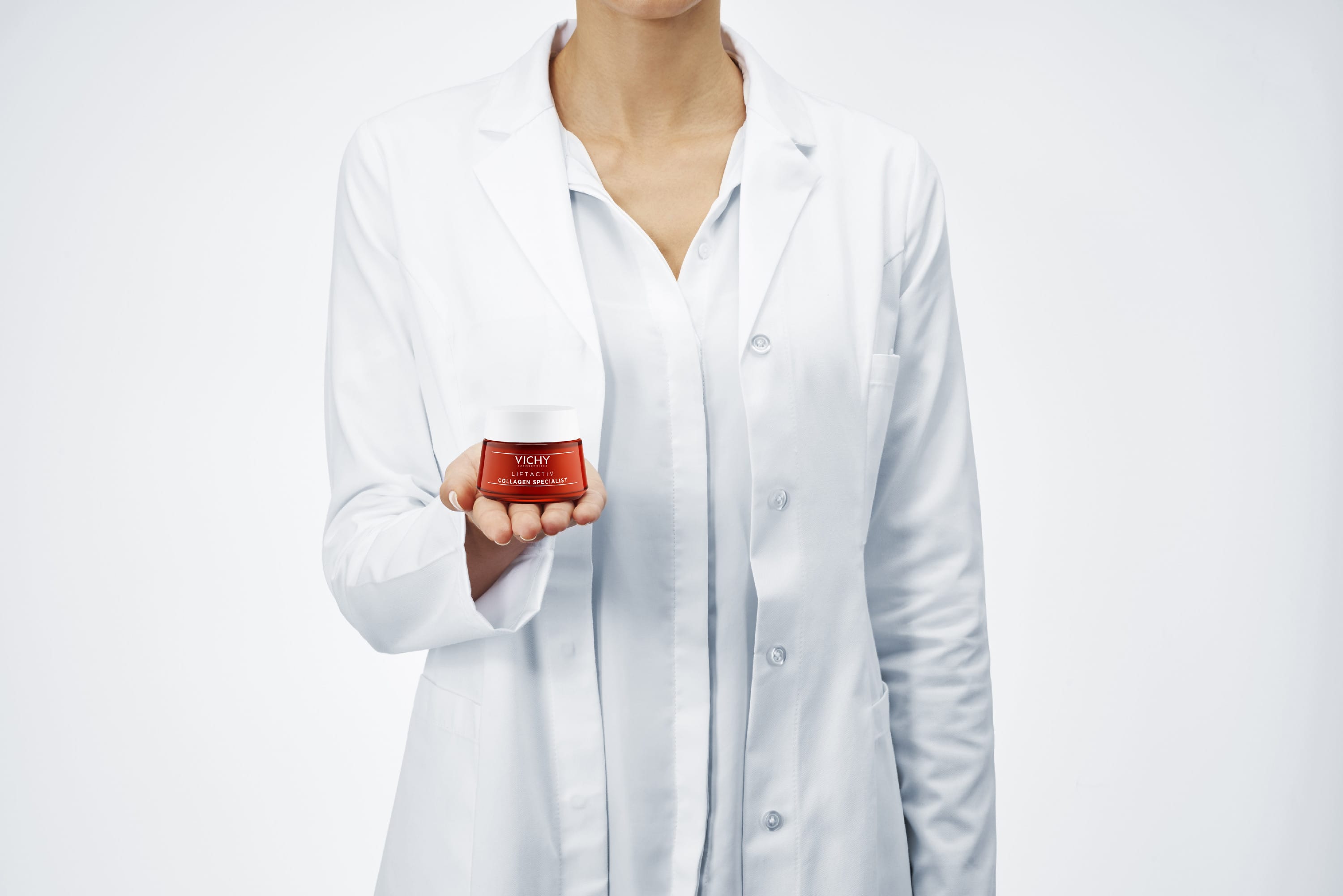 Vichy Liftactiv Collagen Specialist dagkremið er virkt krem hefur það markmið að örva collagen framleiðslu húðarinnar Kremið vekur húðina þína til lífsins á hverjum morgni. Formúlan inniheldur bio-peptíð sem örva collagen framleiðslu húðarinnar, C vítamín sem færa húðinni aukinn frískleika og Hyaluronic sýru sem gefur húðinni rakamikla fyllingu. Auk þess inniheldur formúlan lindarvatnið frá Vichy sem róar húðina og styrkir hana um leið. Hentar öllum húðgerðum, einnig viðkvæmri húð.