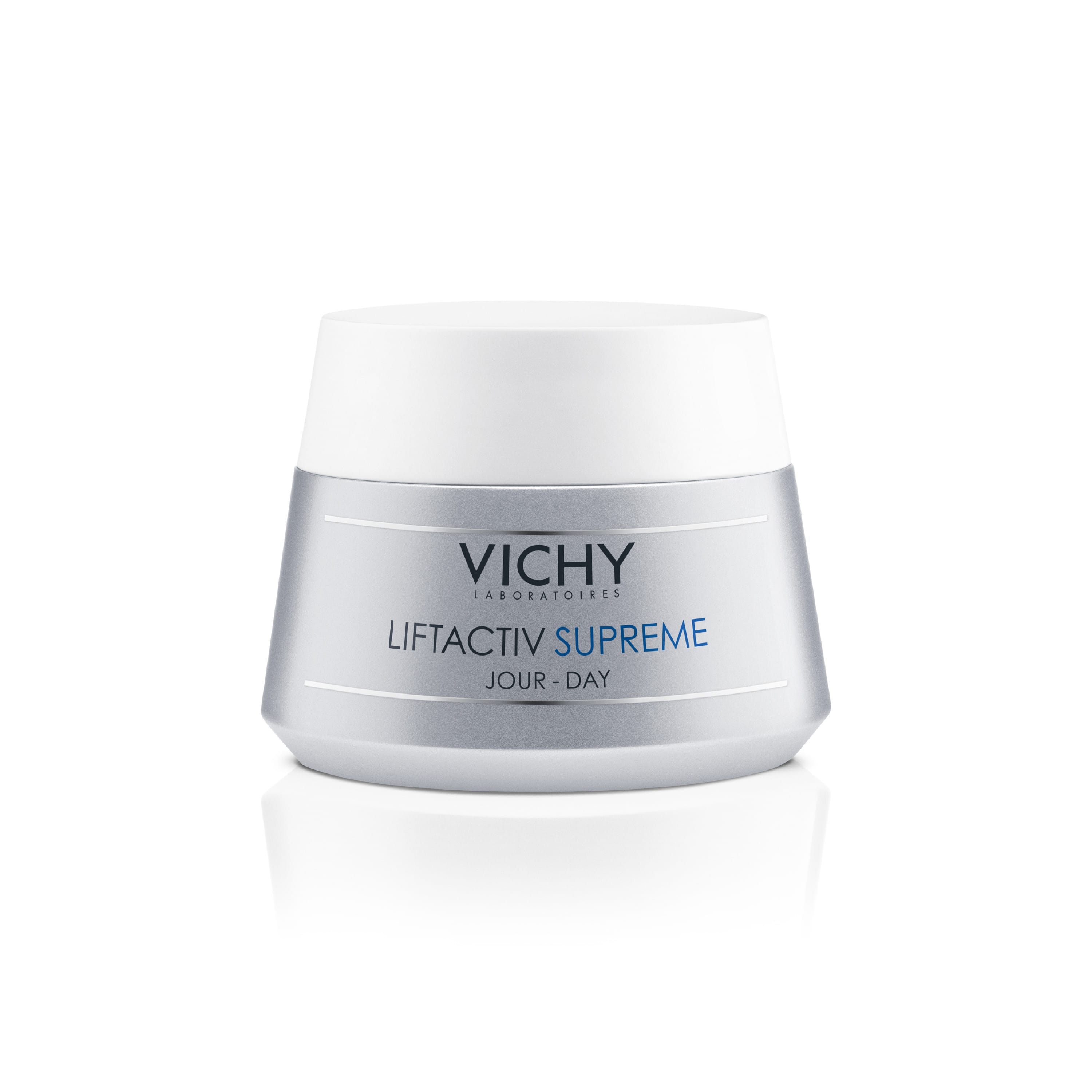Vichy Liftactiv Supreme dagkrem fyrir þurra húð. Kremið dregur úr einkennum öldrunar í húðinni en það jafnar áferð hennar, þéttir hana og hrukkum fækkar.
