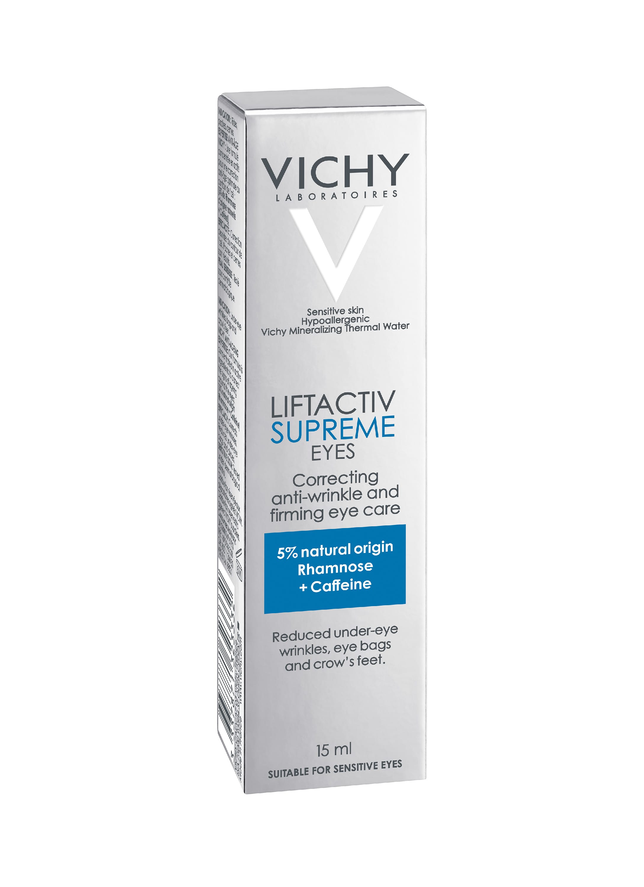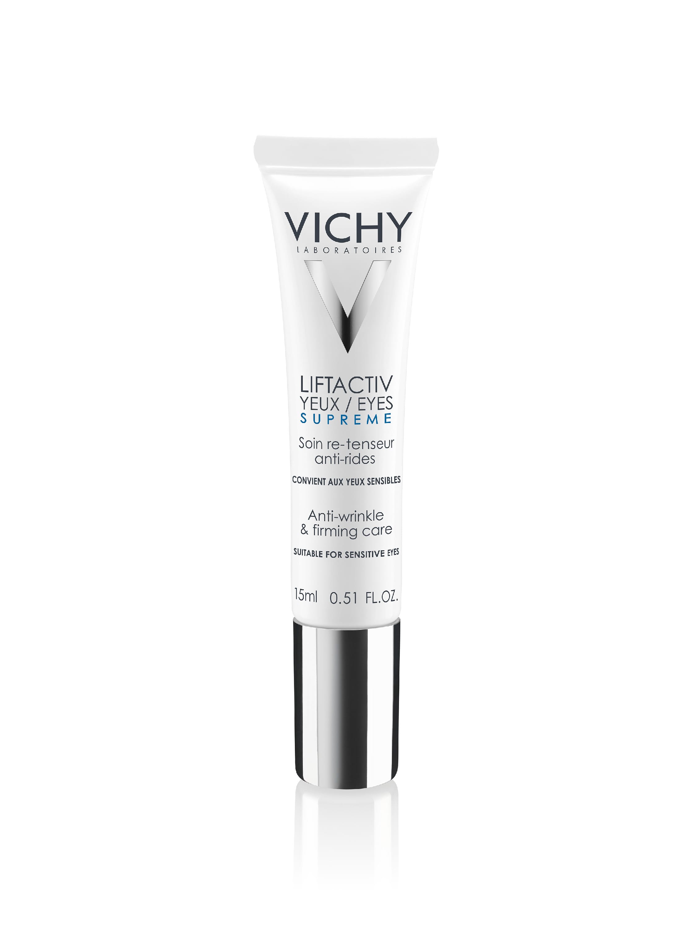 Vichy Liftactiv Supreme augnkremið er virkt krem fyrir þroskaða húð sem hentar öllum húðgerðum. Augnkremið dregur úr línum í kringum augun, dökkum baugum og pokum undir augunum. Með notkun verður húðin stynnari og þéttari. Kremið er létt áferðar og fer hratt inn í húðina. Kremið er sérstaklega hannað fyrir konur 40 ára og eldri sem eru með sjáanlegar hrukkur á augnsvæðinu. Kremið hentar öllum húðgerðum einnig viðkvæmri húð.