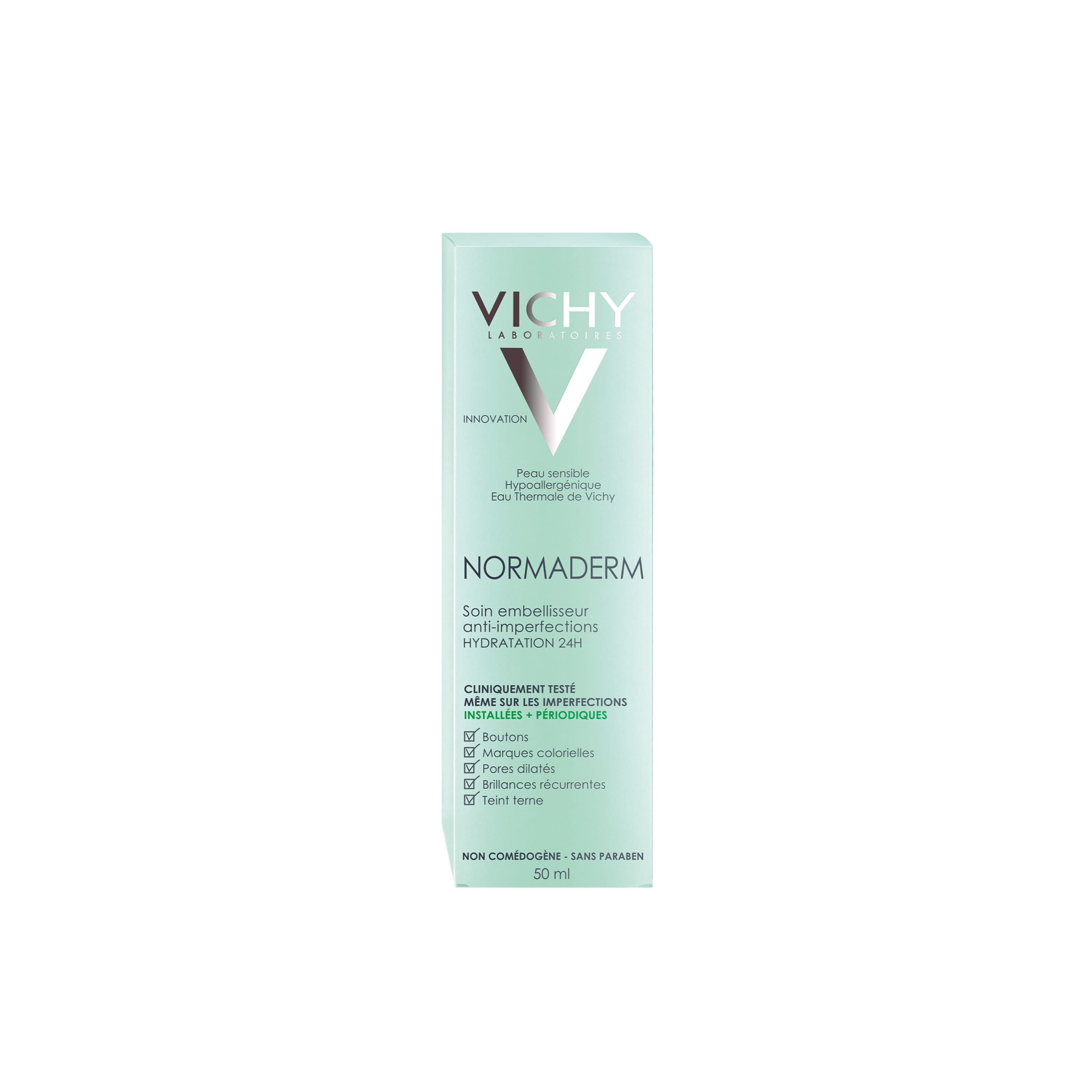 Vichy Normaderm Correcting Anti-Blemish Care er rakakrem fyrir olíumikla, óhreina húð sem vinnur á ójafnvægi í húðinni af völdum hormónabreytinga í ungri húð.