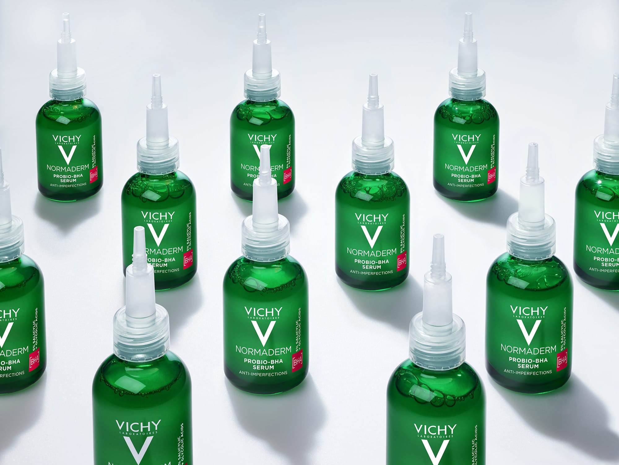 Vichy hefur þróað Normaderm línuna til þess að umbreyta húðinni okkar á nokkrum dögum. Neoderm serumið er sérstaklega gert fyrir viðkvæma olíumikla húð og óhreina húð sem er gjörn á að fá bólur. Serumið er með nýstárlega formúlu sem samanstendur af probiotic brotum sem hjálpa til við að vinna á hormónabólum/unglingabólum á sama tíma og það kemur jafnvægi á húðina og róar pirraða húð. Þökk sé einstökum virkum innihaldsefnum verður húðin heilbrigðari og árangur verður sýnilegur á aðeins 7 dögum. Serumið inniheldur 1% salicylic sýru, 4% glicolic sýru og 5% probiotic fractions.