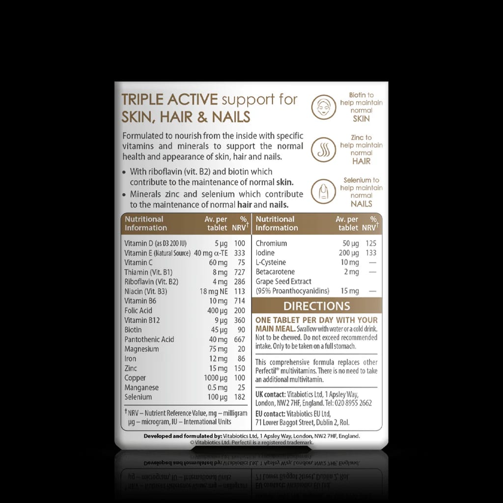 Perfectil er vítamín- og steinefnablanda sérstaklega samsett fyrir húð, hár og neglur. Perfectil hentar konum og körlum frá 16 ára aldri.