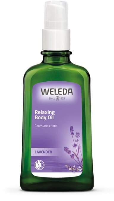 Auk hinna hefðbundnu lækningajurta er fleira að finna í hinum ýmsu nuddolíum Weleda. Dæmi um það er Lavander sem við vitum af langri reynslu að er jurt sem stuðlar að slökun, ró og góðum svefni. Það eru hreinar ilmkjarnaolíur sem hafa róandi áhrif á taugakerfið og virka sérlega vel í nuddolíum. Þegar Lavander olíunni er nuddað inn í vöðvana verður snerting og hiti til þess að virkni hennar eykst.