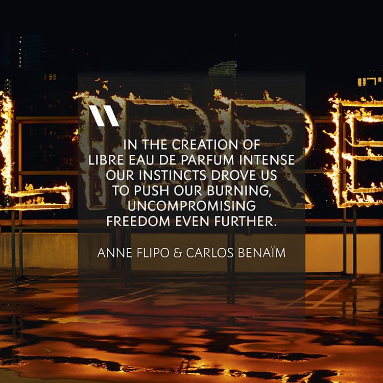 LIBRE Eau De Parfum Intense er ilmur fyrir konuna sem fylgir eðlishvötinni og lifir frelsi sínu til hins ýtrasta. Spennan milli lavander og appelsínublóms er túlkuð á nautnafullan og stílhrinan hátt. Styrkurinn kemur frá blómakjarna þar sem appelsínublóm og orkídea renna saman. Glasið er táknrænt fyrir það hvernig bæði kvenlegir og karllægir eiginleikar spila á móti hvor öðrum. Geómetrísk skuggamynd Yves Saint Laurent smókings og lógóið sem brýtur allar reglur. Libre intense fangar nýjan blæ milli loga og gulls eins og ákall um frelsi. Frelsi til að lifa lífinu til fulls.