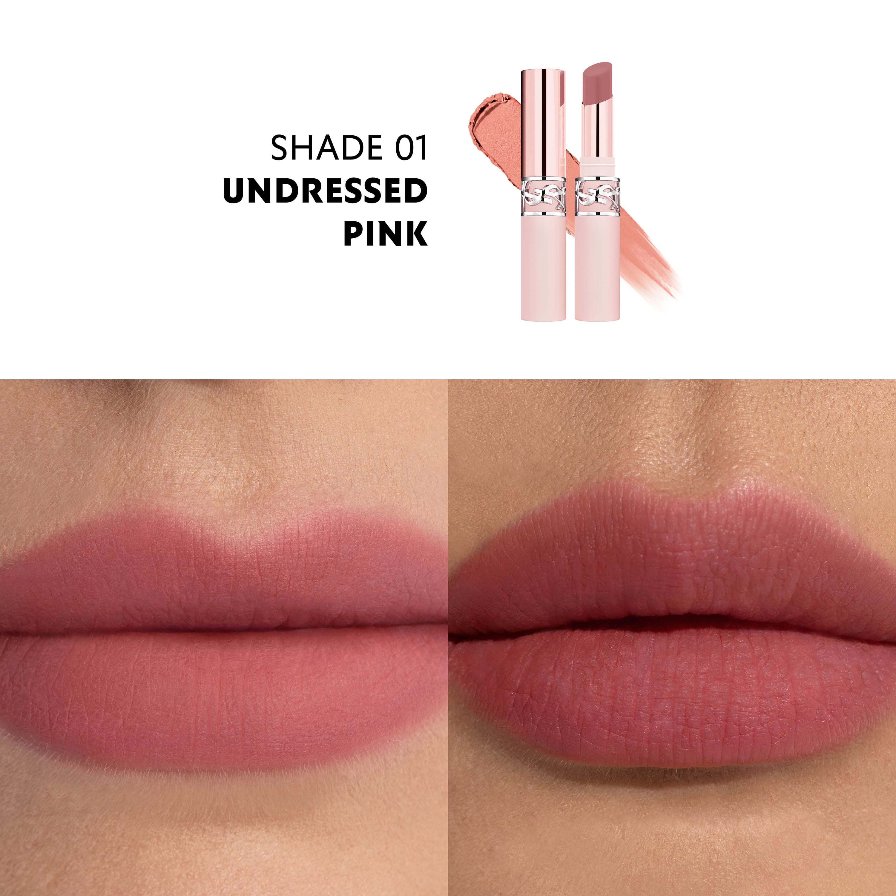 YSL LOVENUDE Lip Blusher, mjúkur „soft blur“ varalitur! Finndu ástina með YSL LOVENUDE Lip Blusher, varalit sem gefur mjúka og ""blurraða"" áferð. Endist í allt að 7 klst., inniheldur 84% nærandi innihaldsefni og kemur í 10 léttum uppbyggjanlegum litum. Upplifðu dásamlega tilfinningu af mýkri og sléttari vörum. Ný kynslóð „neo-matte“ þar sem létt formúla veitir raka á sama tíma og hún gefur mjúka, fókuseraða áferð. Veldu lit sem passar eða ögrar þér og klæddu varirnar í YSL LOVENUDE fyrir fullkomið soft focus útlit.