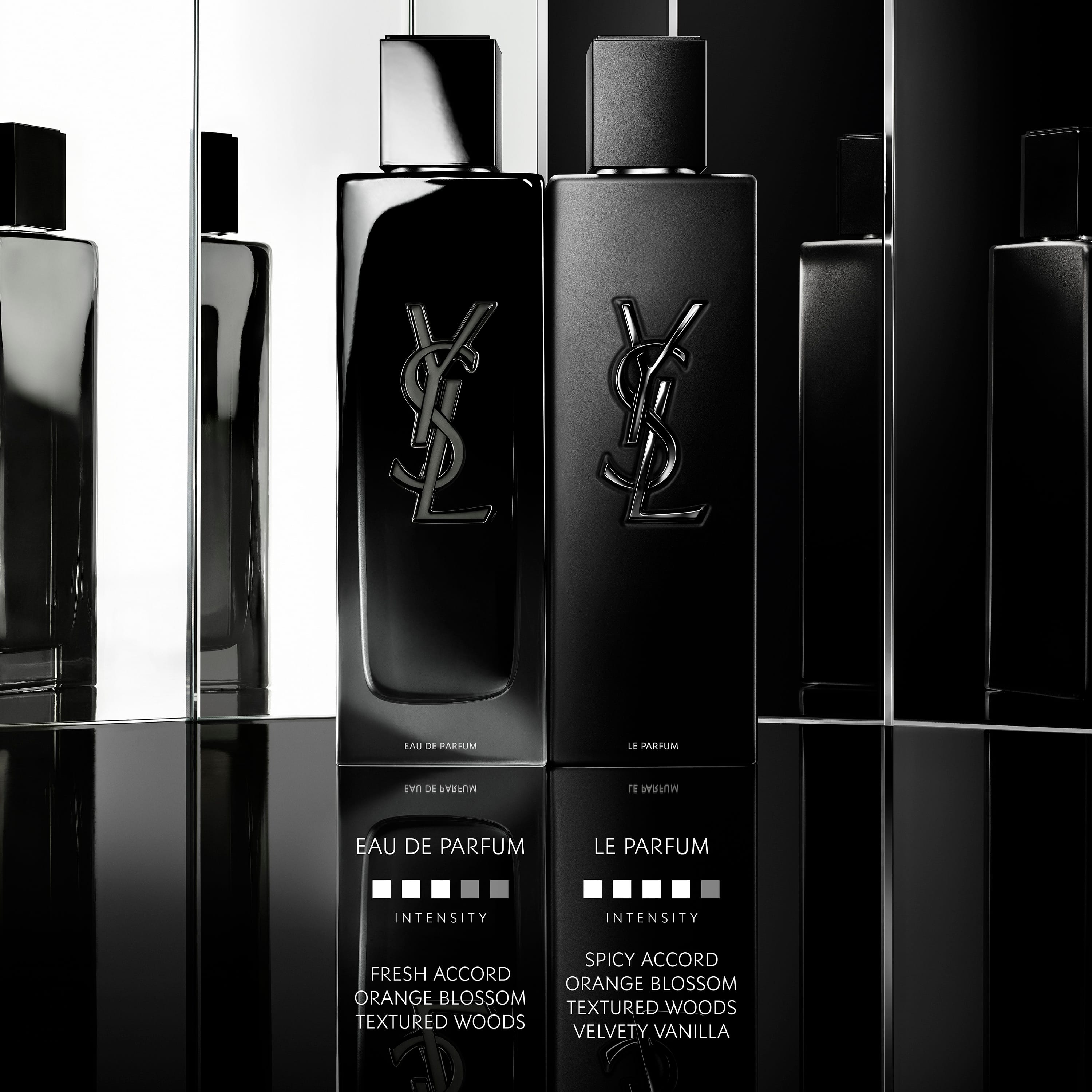 ÁFYLLING. MYSLF Le Parfum er nýr og dýpri ilmur sem innblásinn er af nútíma karlmennsku. Viðartónar mæta blómanótum og flauelsmjúk vanillan fyllir ilminn munúðarfullri hlýju.
